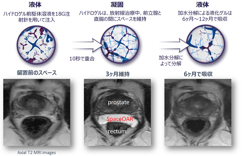 本品は前立腺がんの放射線治療の際に、直腸の吸収線量を減少させることを目的として、直腸前壁を前立腺から離すために用いられる合成吸収性材料です。