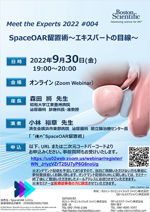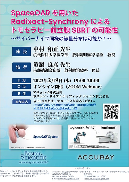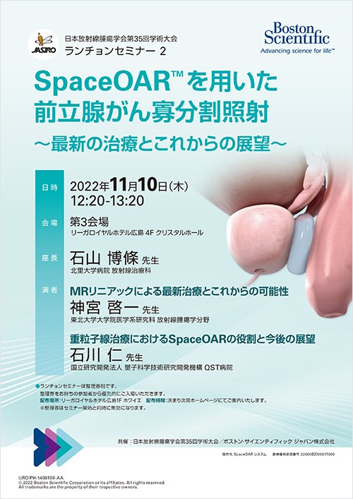 日頃SpaceOARをご使用いただいておりますエキスパートのお二人から各モダリティでのSpaceOARの果たす役割やベネフィットだけでなく、最新の治療方法やこれからの放射線治療に対する展望に関してもご講演いただく予定で御座います。