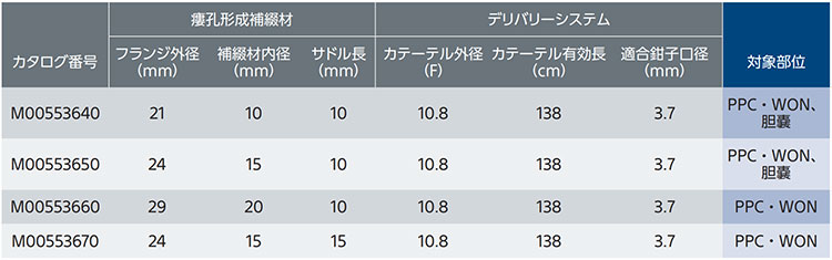*各手技の適応サイズは下部ラインナップ表をご確認ください。