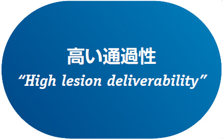 先端チップからバルーン部分に施されたMediglide™疎水性コーティングにより病変部通過性/血管追従性が向上