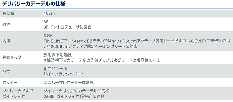 挿入するリード等の外径がSSPカテーテルの内径より小さいこと(< 6.5 F)を事前に確認してください。