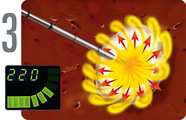 ・腫瘍の熱凝固がすすみ、ロール・オフ*するまで継続してエネルギーを供給します。