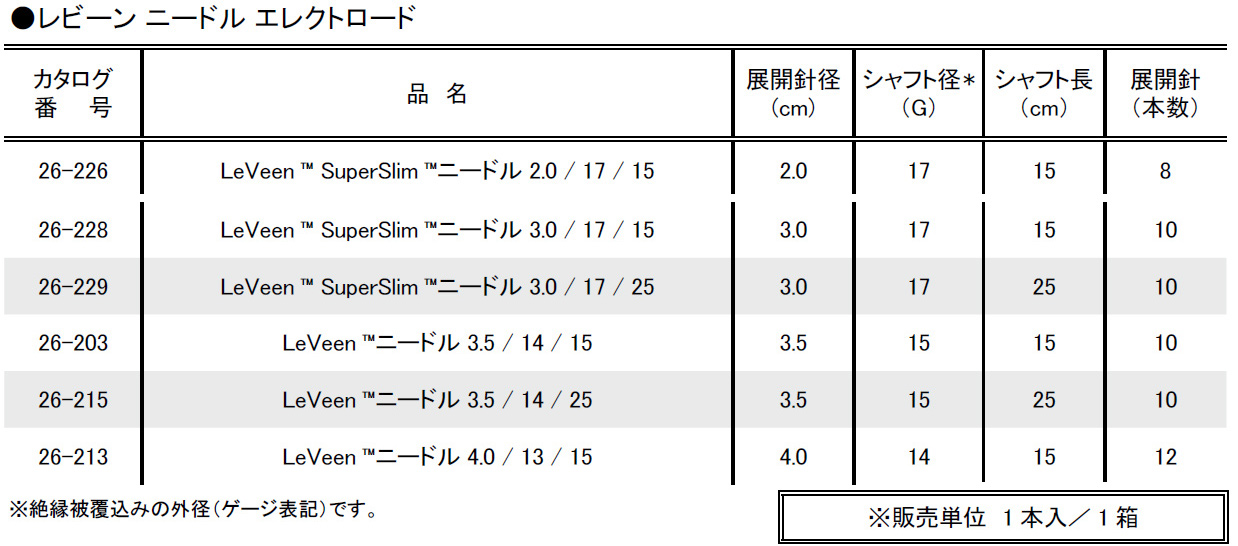 ・Leveen ニードル:2.0 / 3.0 / 3.5 / 4.0cm