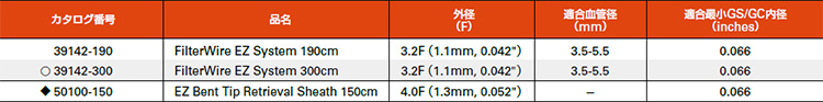 適合ガイドワイヤ : 0.014 inches(EZ Bent Tip Retrieval Sheath 150cm)