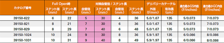 *最新の規格はPeripheral Interventions価格表をご覧ください。