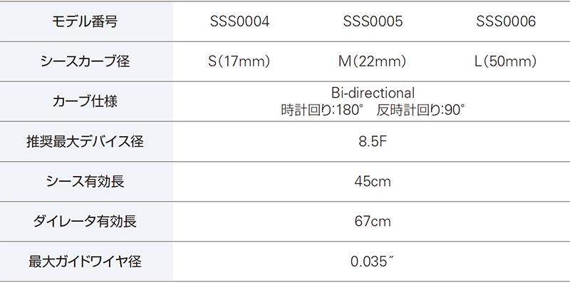 上大静脈を介した経中隔アクセスを可能にする柔軟性と操作性を兼ね備えます。