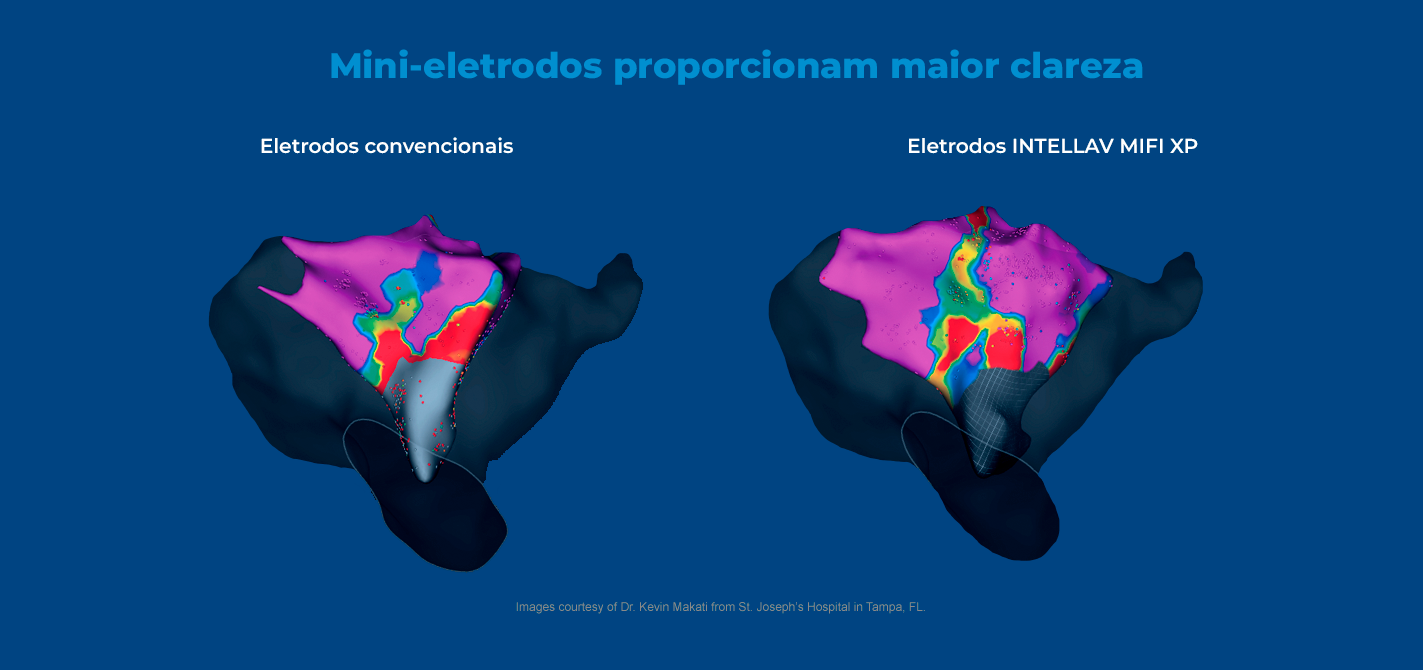 “A tecnologia XP INTELLANAV MIFI™ proporciona maior sensibilidade e especificidade na previsão de fibrose atrial e na identificação de substrato anormal em comparação com eletrogramas bipolares.”1