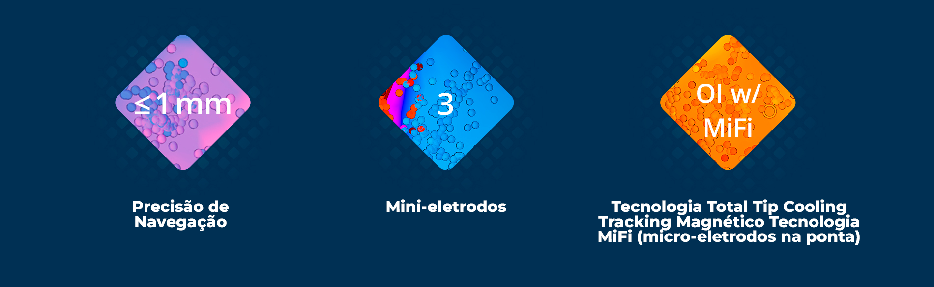- Análise Verdadeira de Tecidos: Um sinal altamente localizado, dos mini eletrodos, permite a distinção entre tipos de tecidos viáveis e não viáveis com mais precisão sobre os bipolos convencionais.2