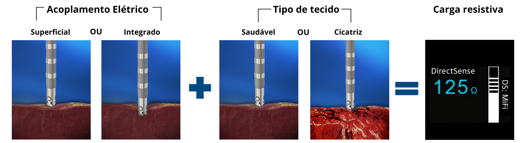 A Tecnologia DIRECTSENSE™ mede a impedância local detectando mudanças em um campo elétrico gerado da ponta do cateter até o eletrodo anelar proximal. O resultado são insights mais profundos e localizados sobre o tipo de tecido que você está tocando e como está influenciando esse tecido durante a ablação.