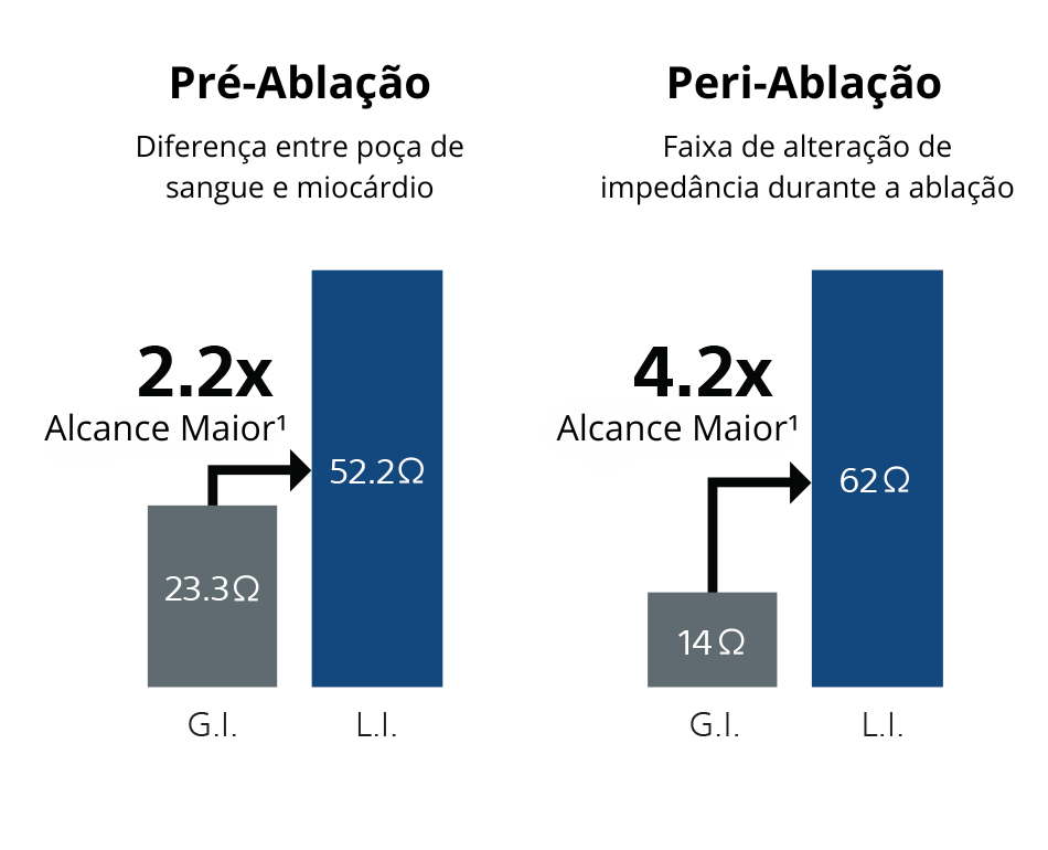 A impedância do gerador tem sido uma medida padrão durante os procedimentos de ablação por RF. A Tecnologia DIRECTSENSE™ baseia-se neste princípio medindo a impedância local apenas em torno da ponta do Cateter de Ablação de Irrigação Aberta INTELLANAV MIFI™.
