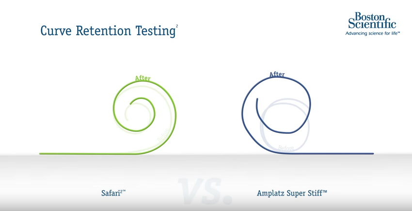 O SAFARI2™ mantém um alto percentual de geometria da curva após a inserção em um cateter pigtail.
