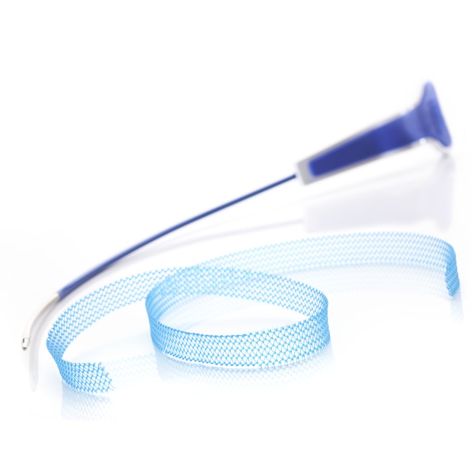 • A cor azul de fácil visualização melhora sua visibilidade para um tensionamento intraoperatório mais preciso do sling e facilita a localização pós-operatória.
