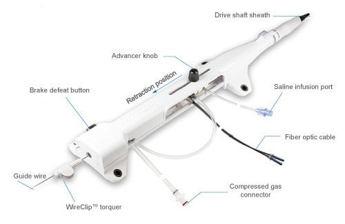 The Rotablator Atherectomy System is an air-driven system featuring a 5-micron diamond-tipped burr that rotates at up to 190,000 RPM.