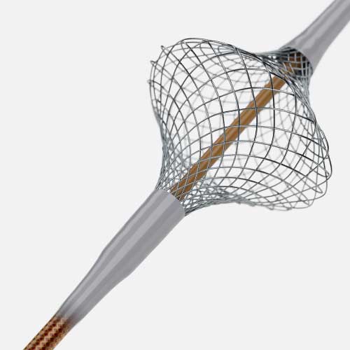 In deep vein thrombosis (DVT) cases, the nitinol basket can be deployed distal to the thrombus, expanded circumferentially to fully conform to the vessel wall atraumatically, and pull the thrombus back to the catheter with its unique weave.